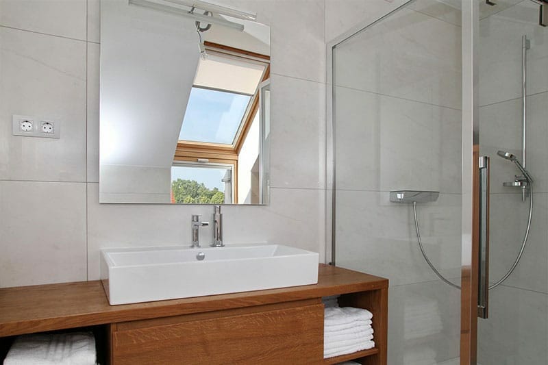 Da pa bi družina v spalnicah ne le spala, pač pa si tudi spočila, so poskrbeli v podjetju VELUX “Spanje je ključno za naš um in telo, zato nekvaliteten spanec negativno vpliva na naše zdravje,” razloži področni vodja prodaje Gregor Sušnik. Za dober spanec je namreč pomembno, da telo čim bolj izpostavimo sončnemu sevanju v različnih delih dneva, kar uravnava naš biološki, cirkiadni ritem. Ker pa nove generacije preživijo več kot 90% časa v zaprtih prostorih, je nujno, da tudi te osvetlimo kvalitetno in da si zagotovimo ne le naravno svetlobo, pač pa tudi kvaliteten razgled in zaščito pred bleščanjem. Vse troje je v mansardnih spalnicah kostanjeviške družine doseženo s kombinacijo vertikalnih in strešnih oken.